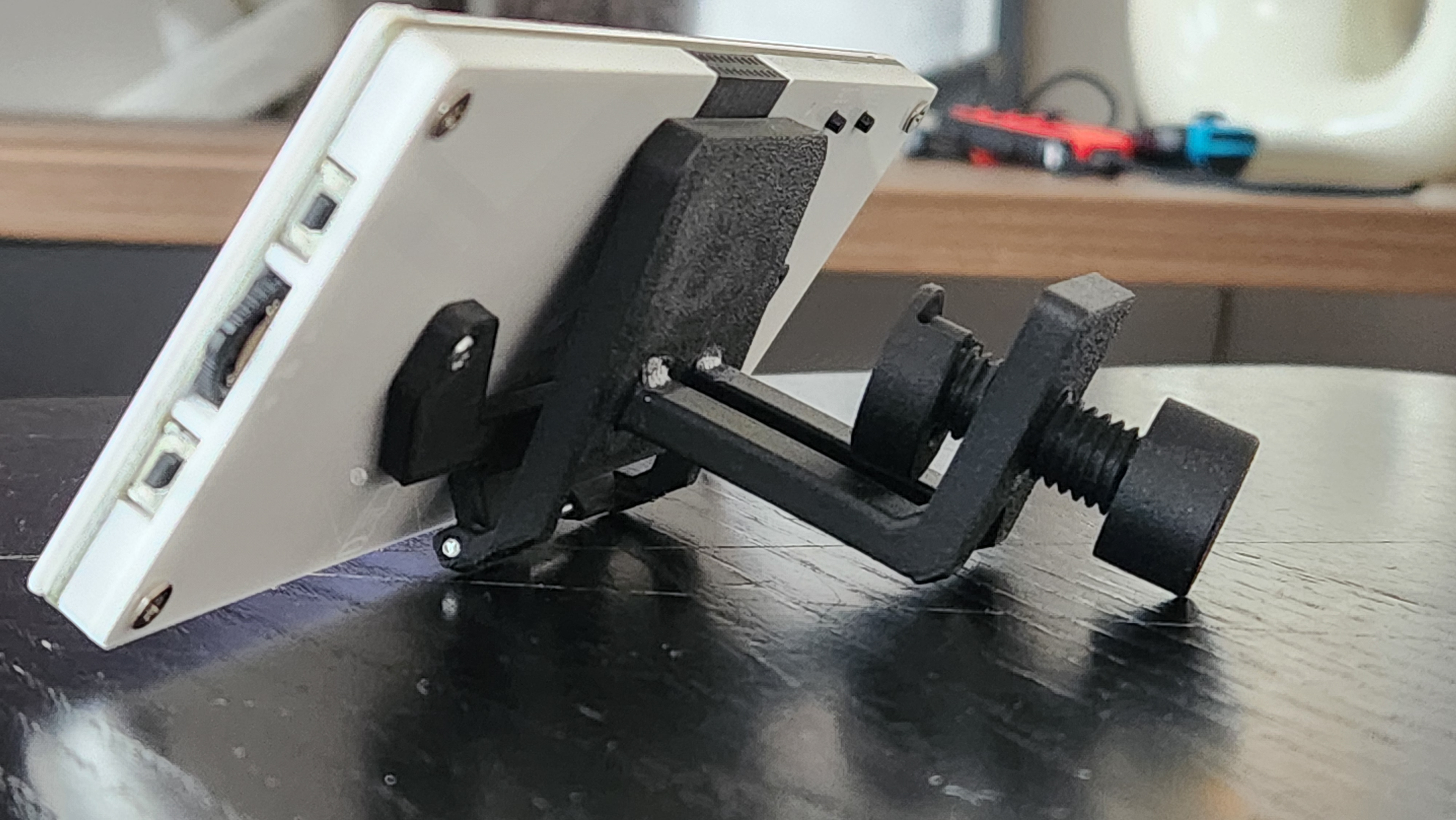 As a dashboard the device has a custom 3D printed mounting with a cradle and mounts to a monitor easily.