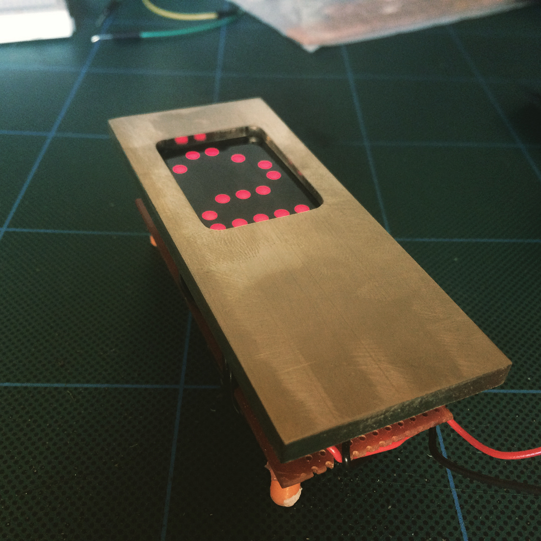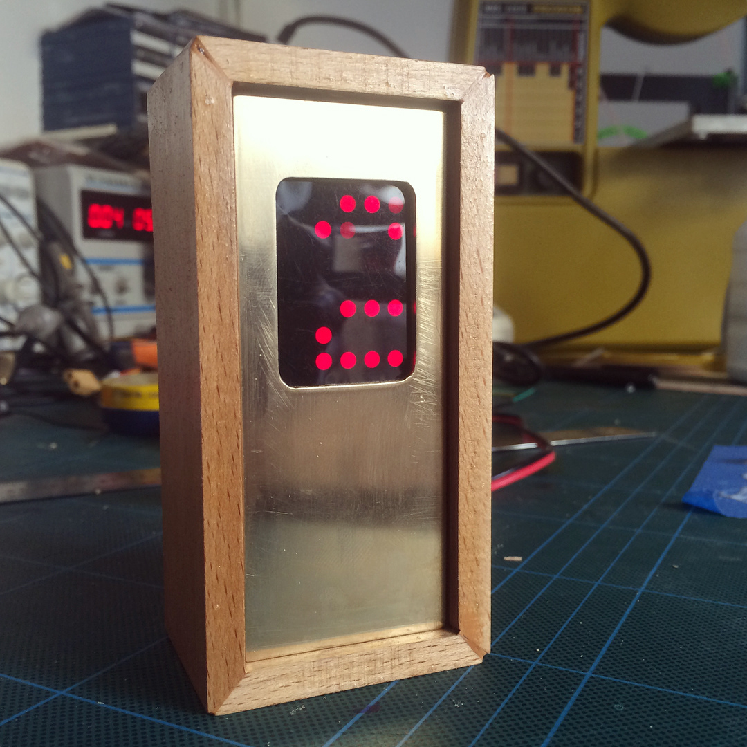 Wooden case with brass faceplate. Arduino controller
